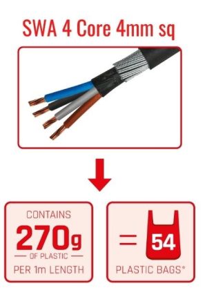 Polymeric/PVC/plastics and LSZH (low smoke zero halogen) materials take up a huge part of landfills and you can see by the image on the left just how much SWA cables incorporate plastic per one meter!