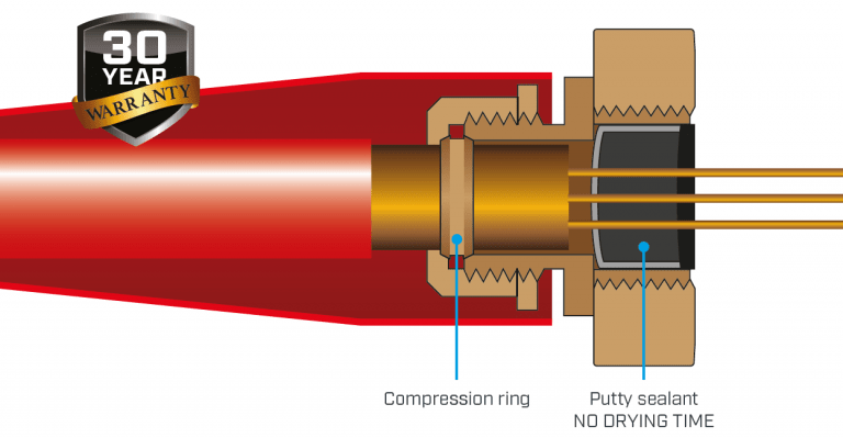 A complete Exd rated cable system with a gas tight, water tight, dust proof seal and a 30 year warranty.