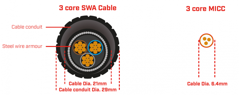 Unlike any other type of fire resistant cable it required no polymers, tapes or armouring. MICC will continue to operate for hours directly in the heart of a fire, whilst safely carrying a load in temperatures in excess of 1080°C. Many years of historical evidence on the fire performance capabilities of MICC deems it the only true fire survival cable.